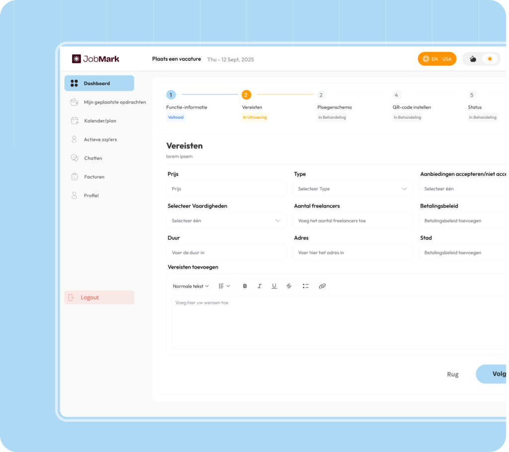 Via ons platform heb je direct toegang tot beschikbare freelancers in heel Nederland die voldoen aan jouw wensen.